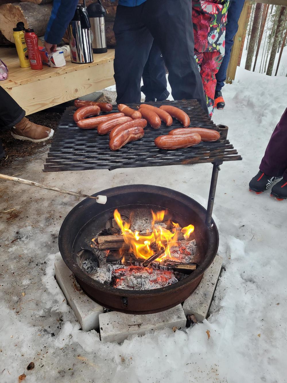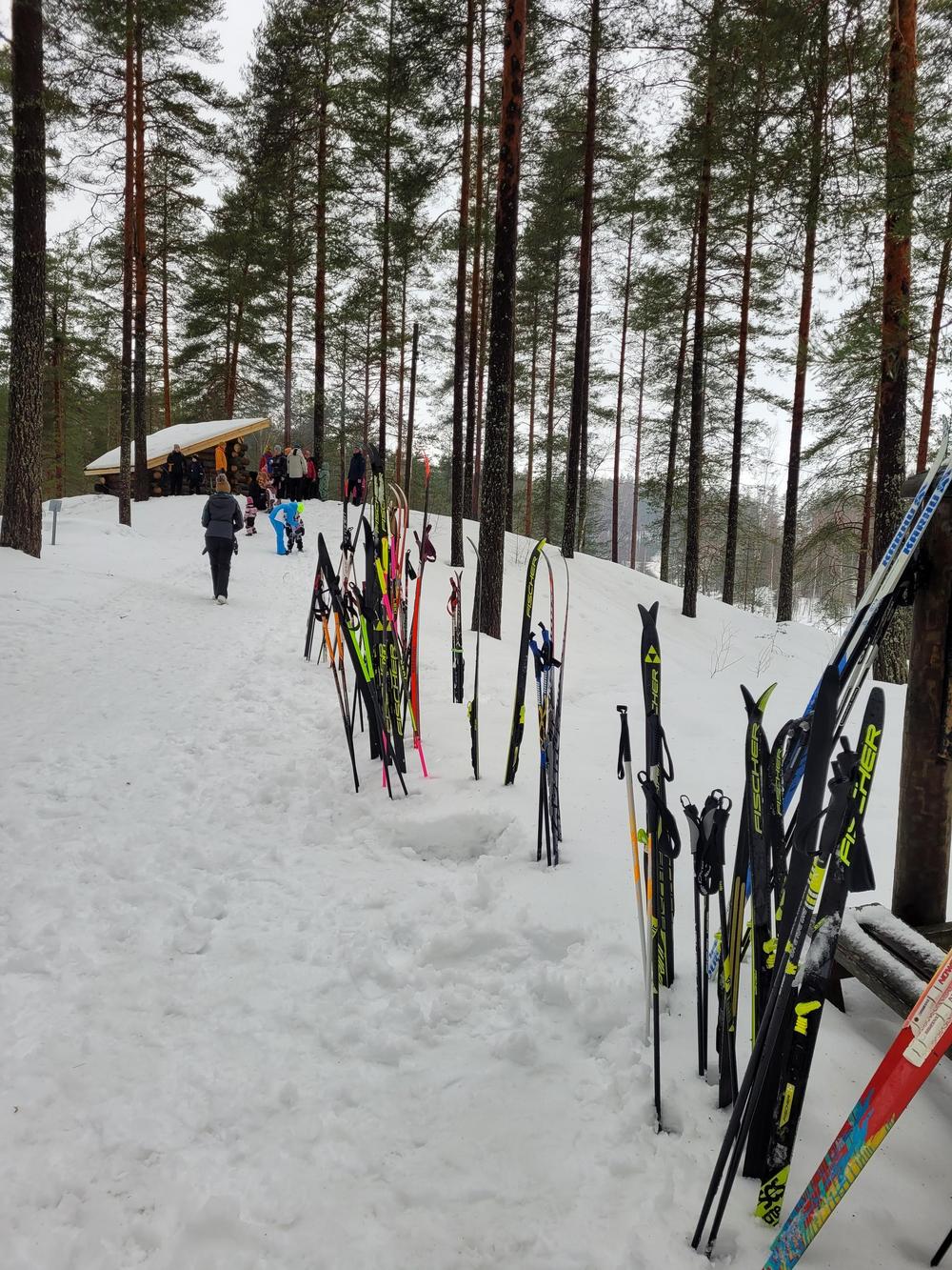 Laduilla nähtiin lähes 40 lasta ja nuorta hiihtämässä, ja lisäksi useita aikuisia mallia näyttämässä. Makkarat, mehut ja kahvit maistuivat liikunnan jälkeen Suurlammen hienolla laavulla!